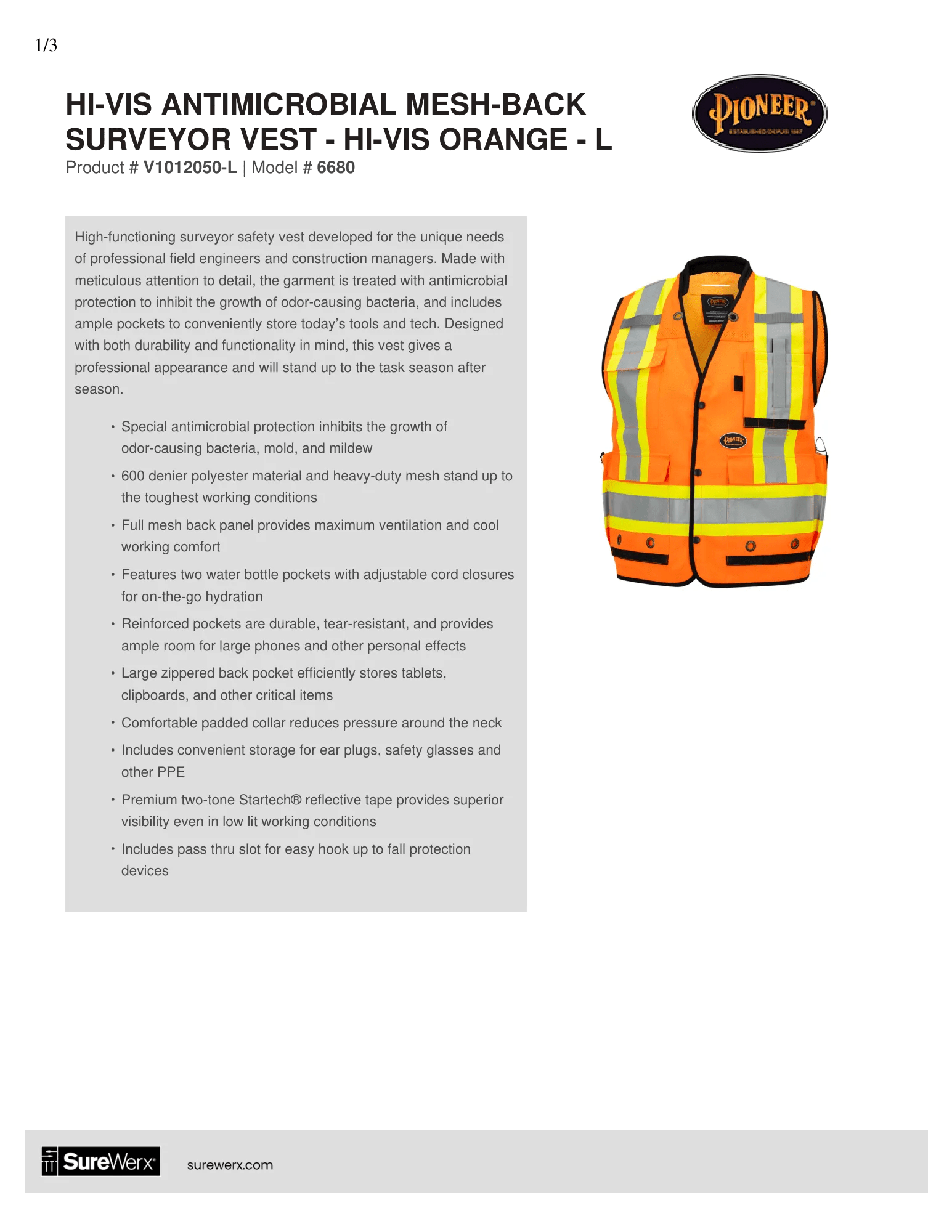 Hi-Vis Antimicrobial Mesh-Back Surveyor Vest - Hi-Vis Orange - L- Tech Document– Technical Specs