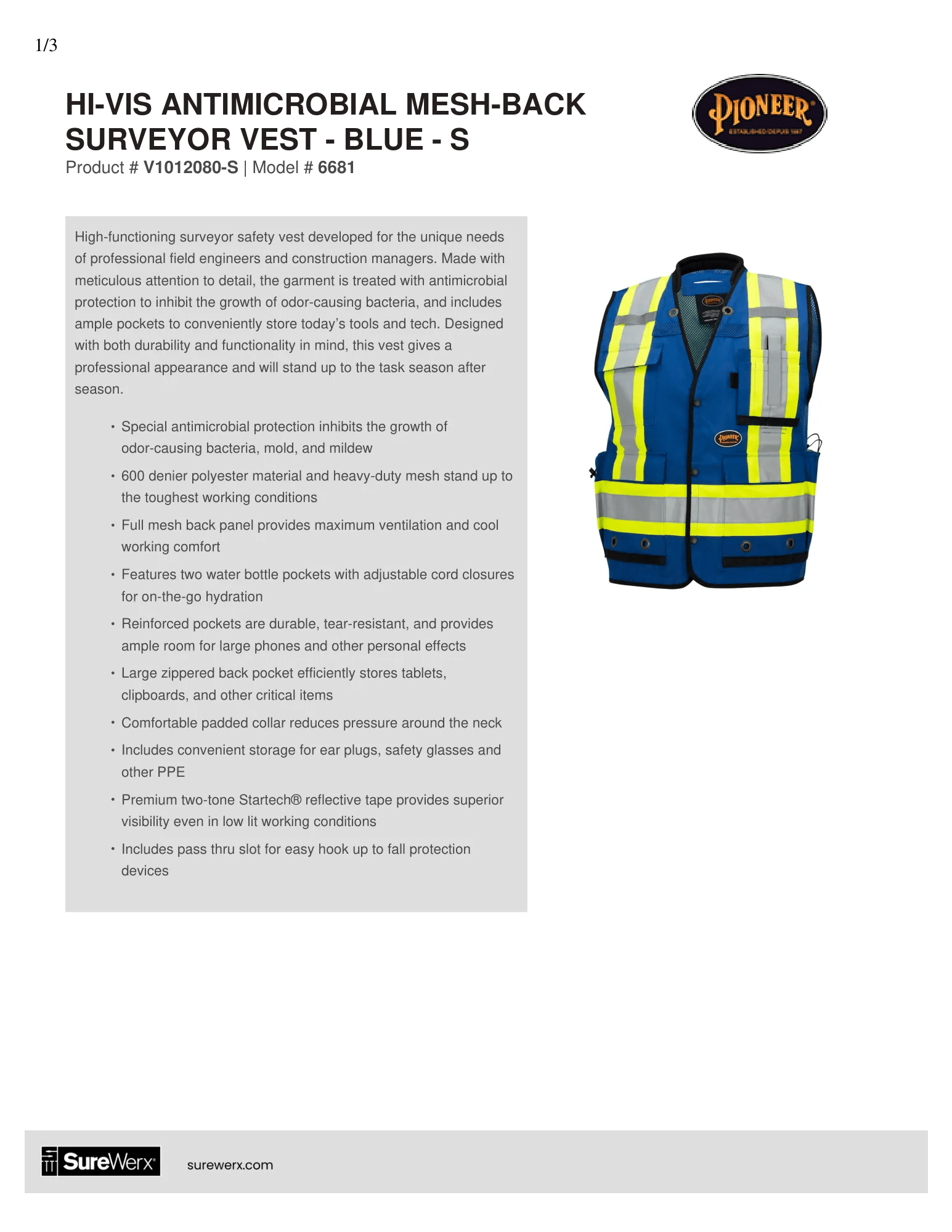 Hi-Vis Antimicrobial Mesh-Back Surveyor Vest - Blue - M- Tech Document– Technical Specs