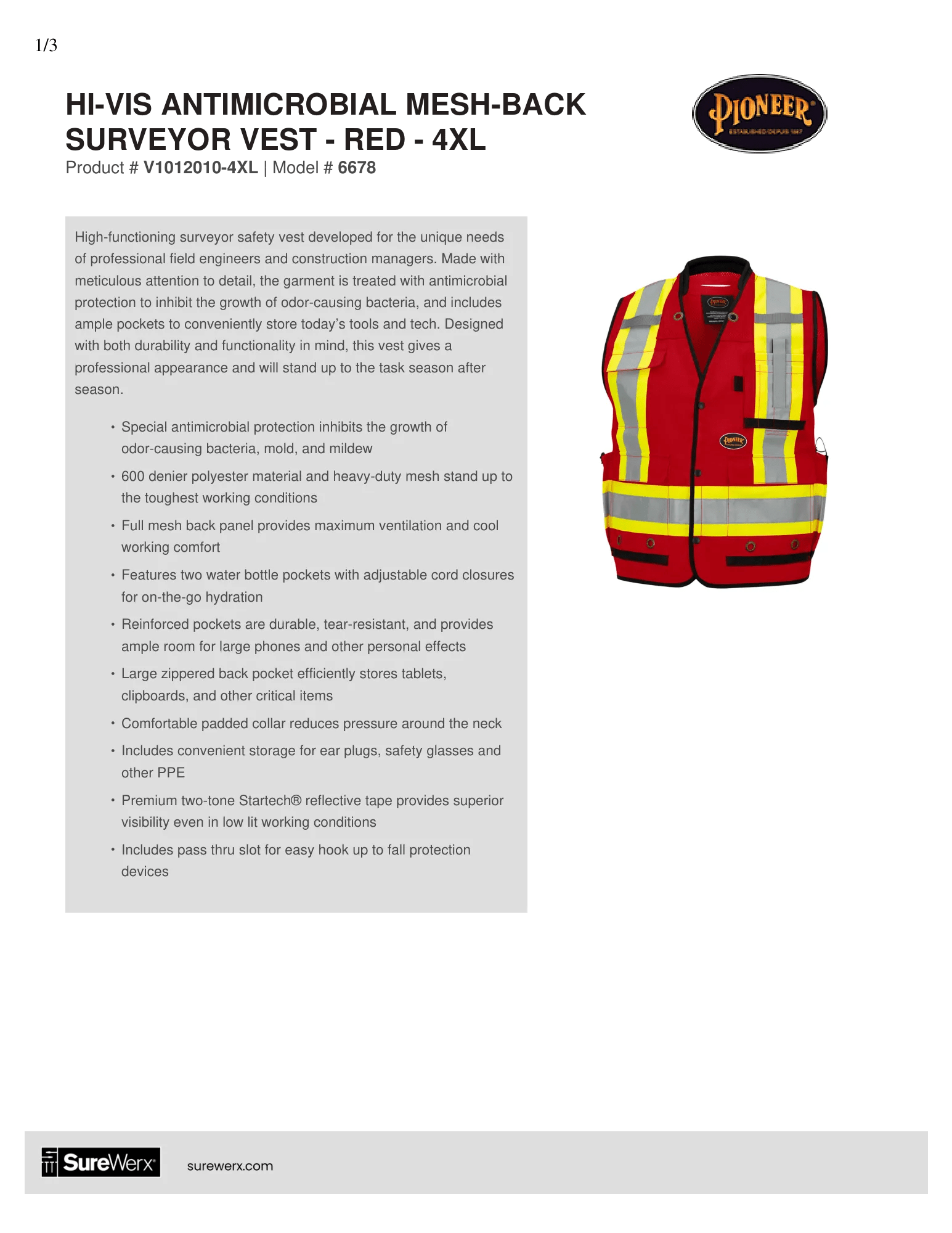 Hi-Vis Antimicrobial Mesh-Back Surveyor Vest - Red - XL- Tech Document– Sales Sheet– Technical Specs