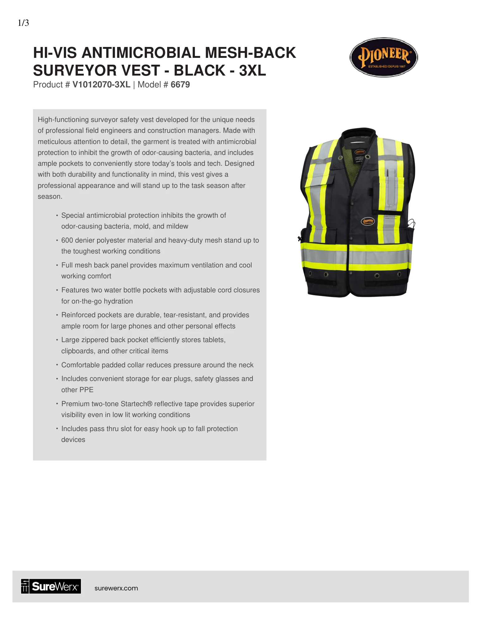Hi-Vis Antimicrobial Mesh-Back Surveyor Vest - Black - XL- Tech Document– Technical Specs