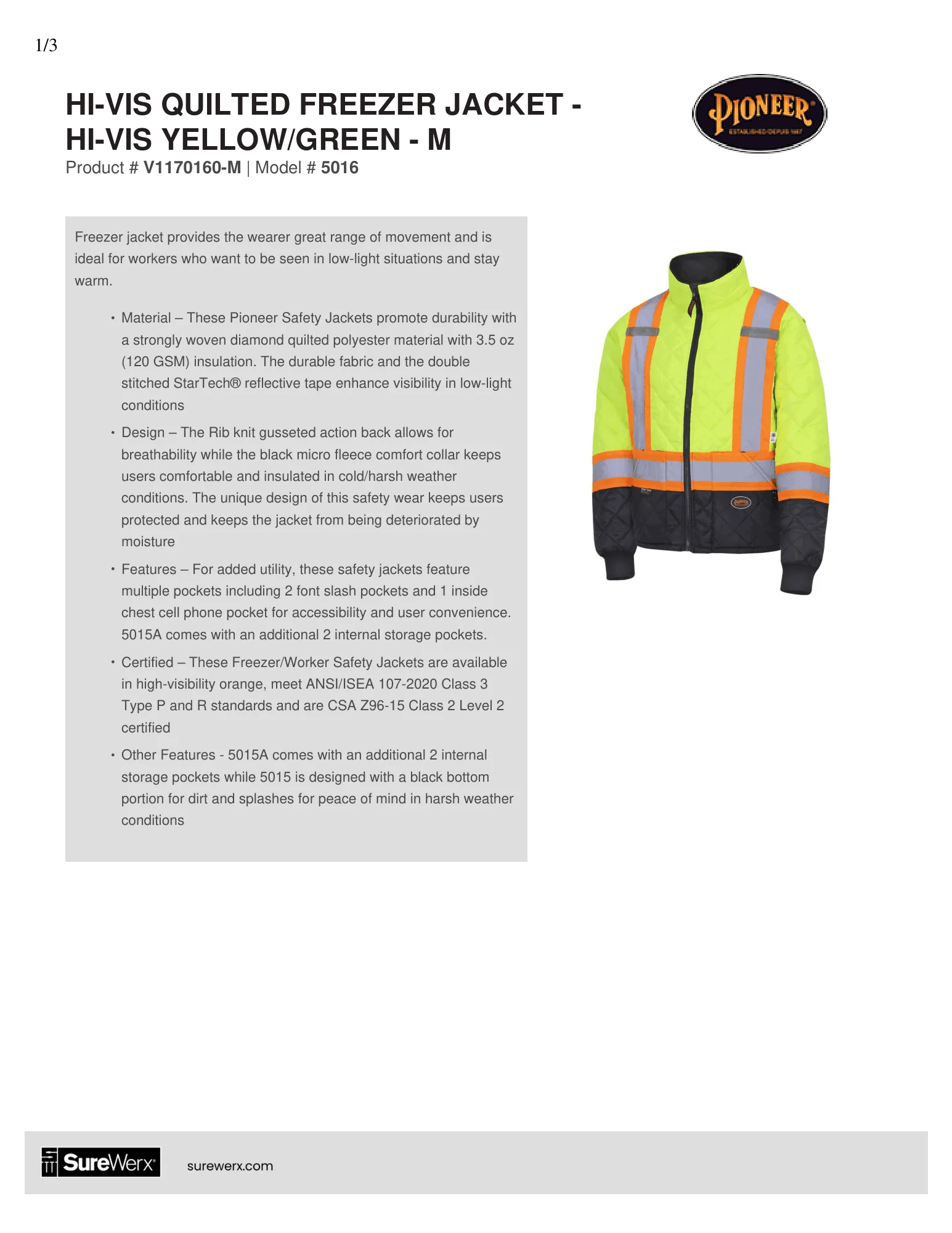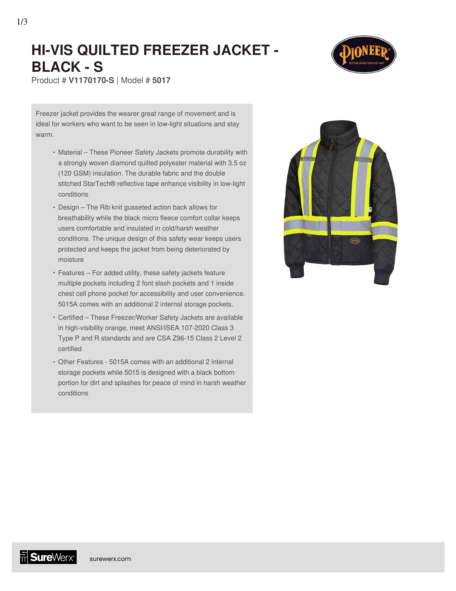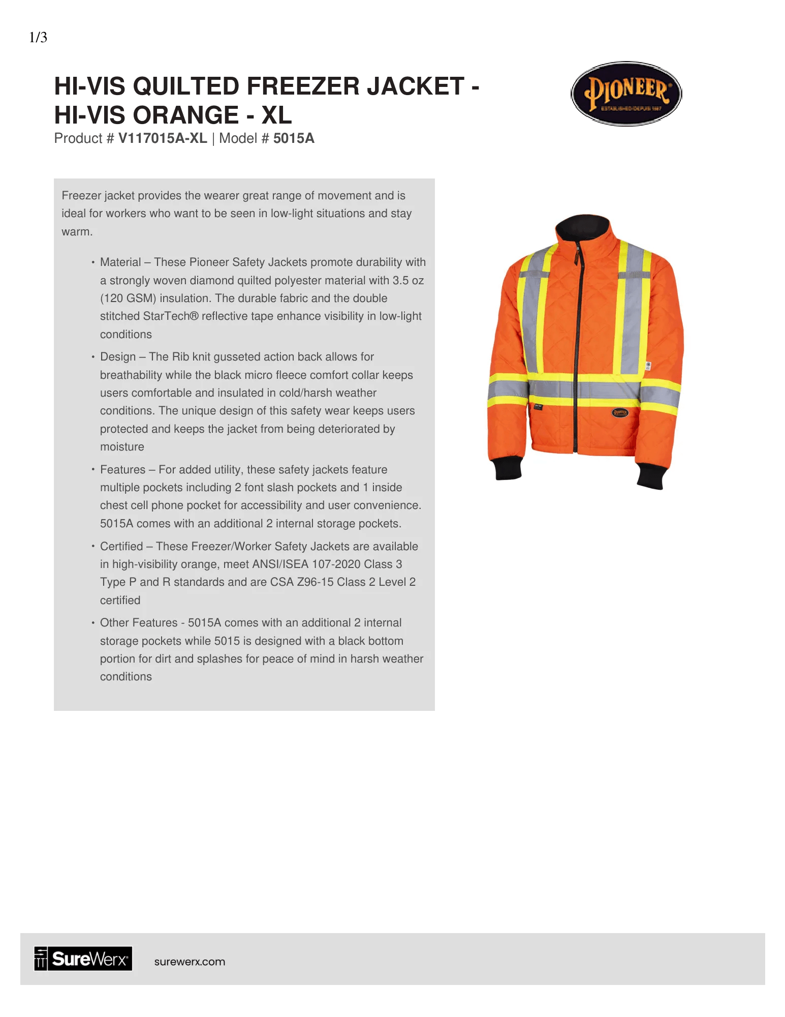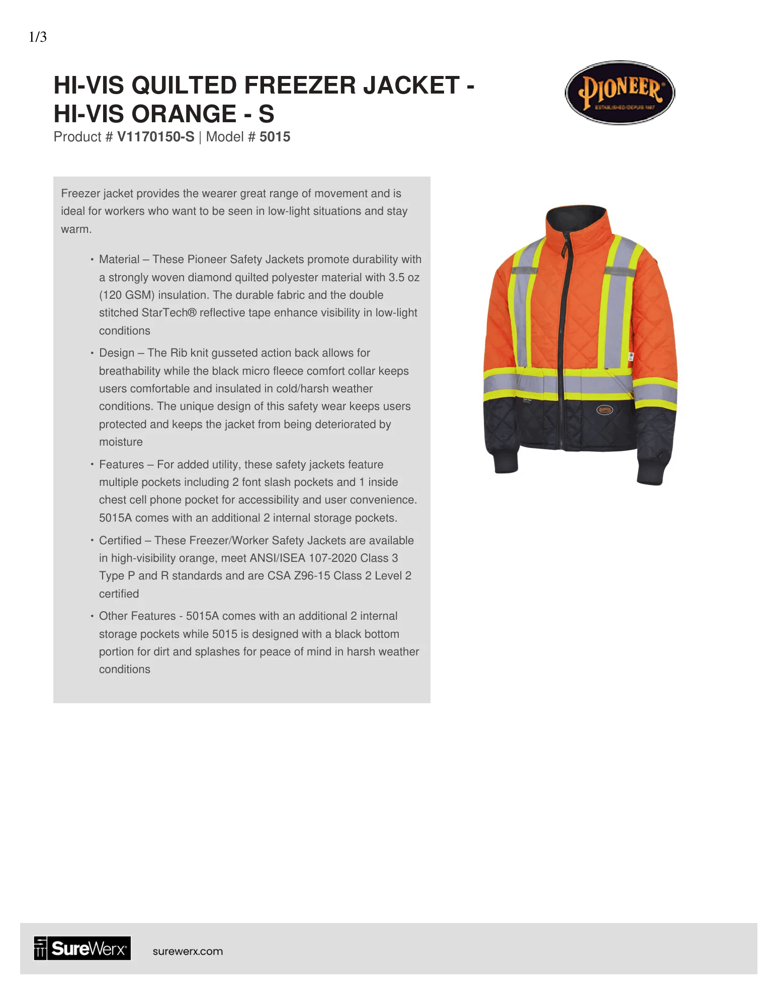 - Certified – These Freezer/Worker Safety Jackets are available in high-visibility orange meet ANSI/ISEA 107-2020 Class 3 Type P and R standards and are CSA Z96-15 Class 2 Level 2 certified