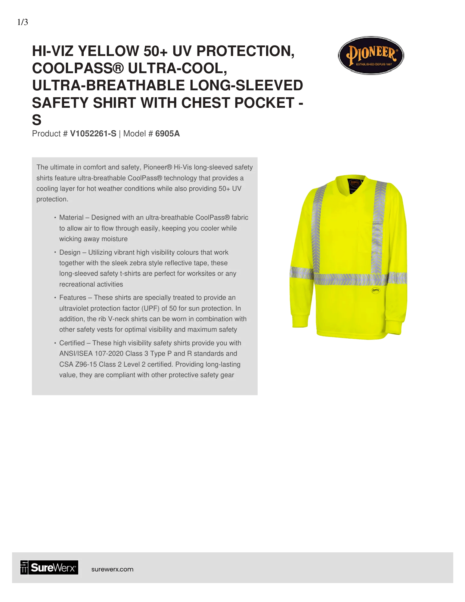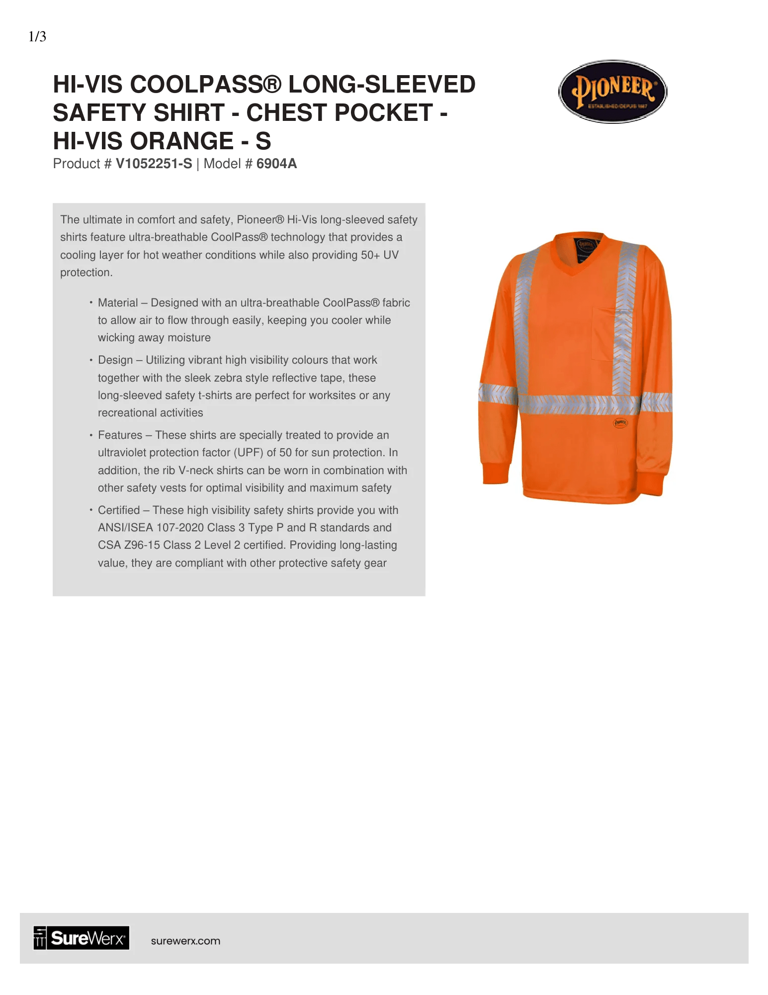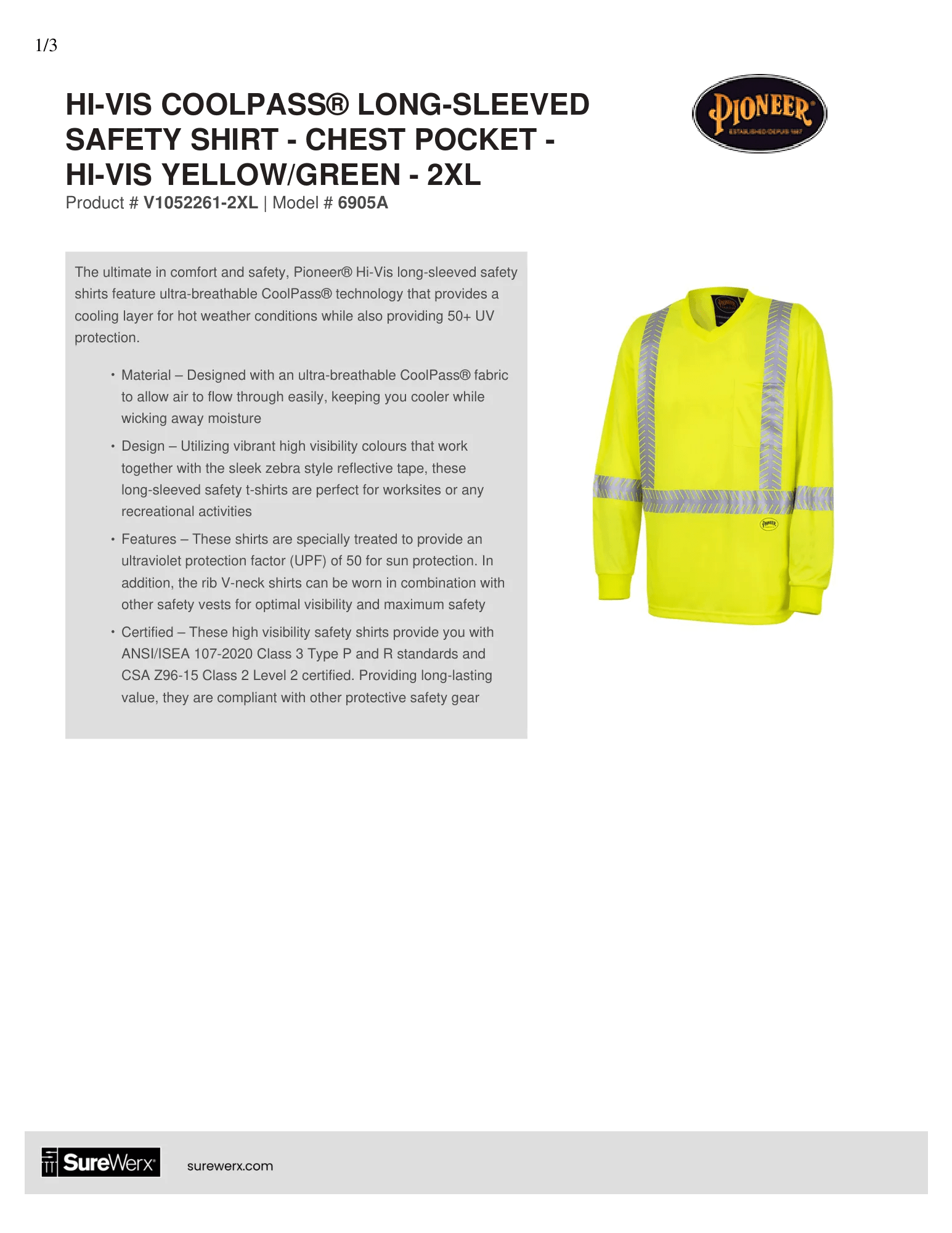 The ultimate in comfort and safety Pioneer® Hi-Vis long-sleeved safety shirts feature ultra-breathable CoolPass® technology that provides a cooling layer for hot weather conditions while also providing 50+ UV protection.