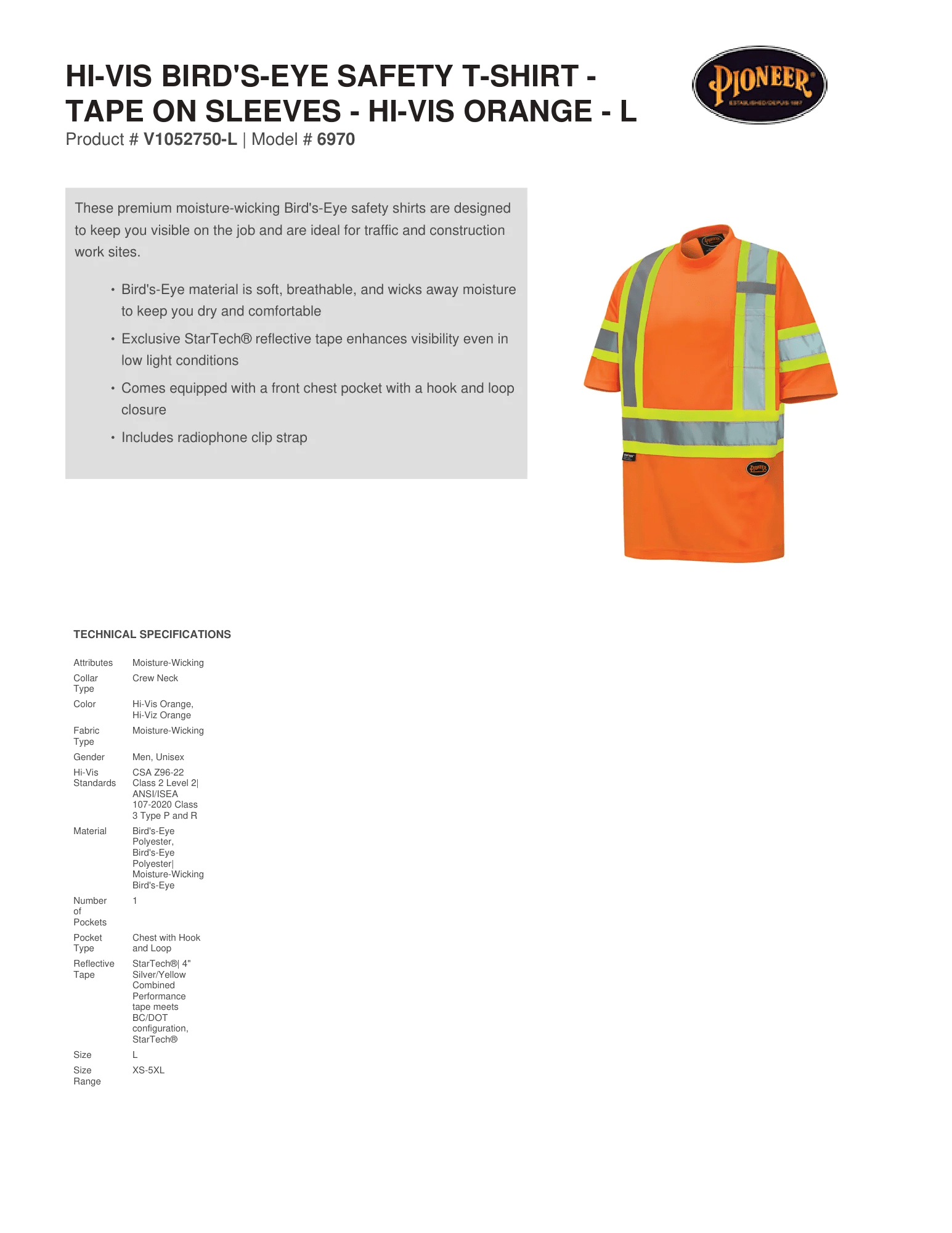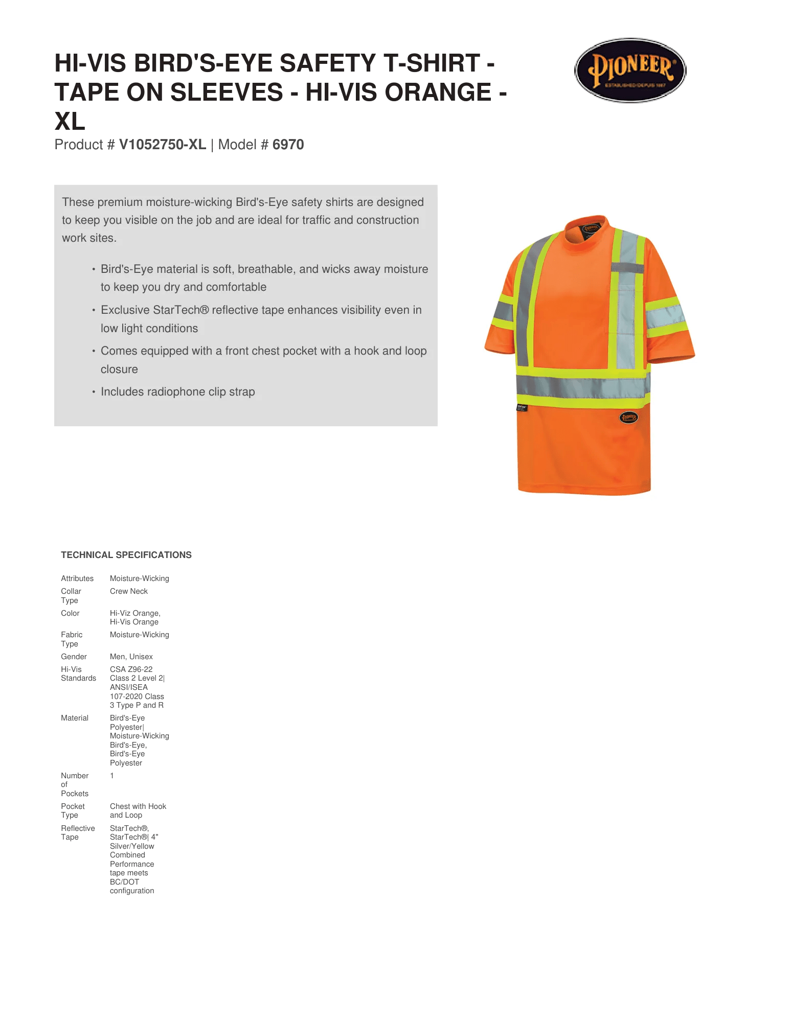 Hi-Vis Bird's-Eye Safety T-shirt - Tape on Sleeves - Hi-Vis Orange - XL– Technical Specs