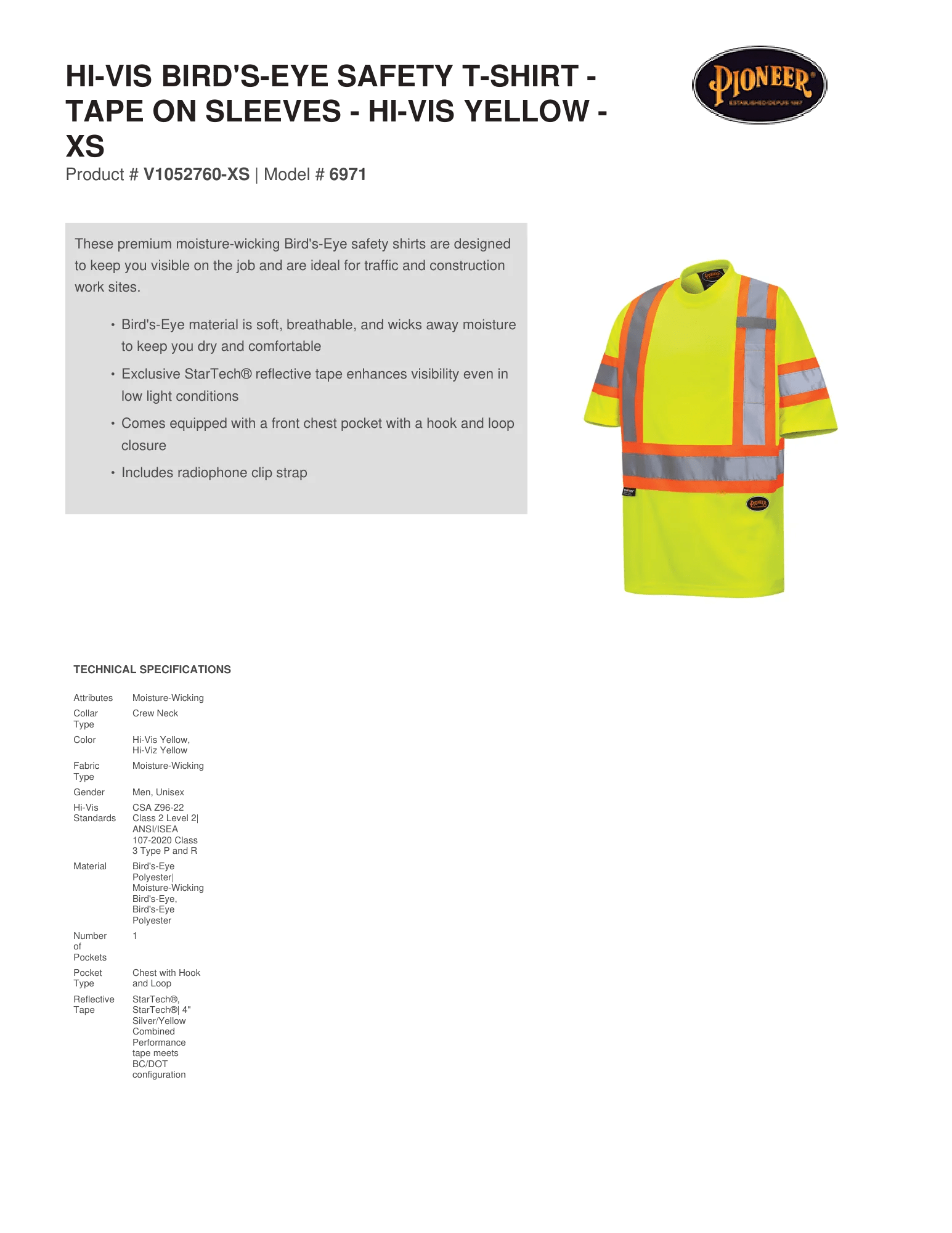 Hi-Vis Bird's-Eye Safety T-shirt - Tape on Sleeves - Hi-Vis Yellow - XS– Technical Specs