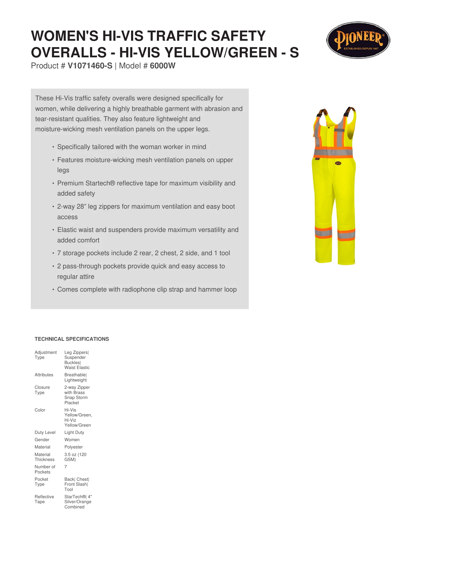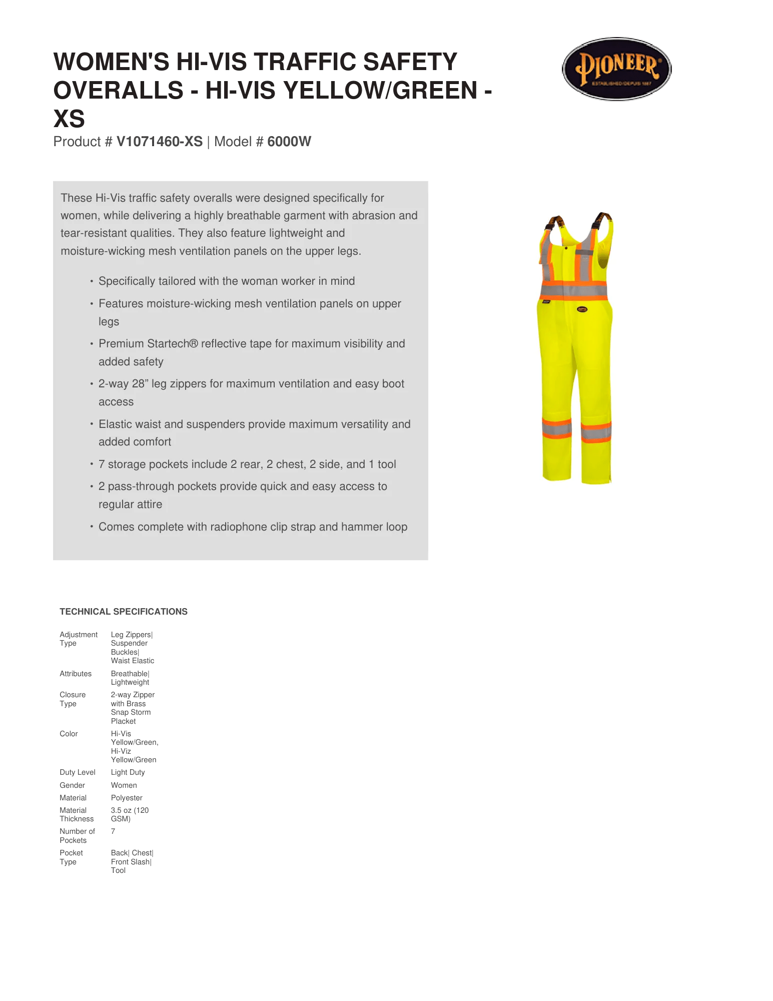 Women's Hi-Vis Traffic Safety Overalls - Hi-Vis Yellow/Green - XS– Technical Specs