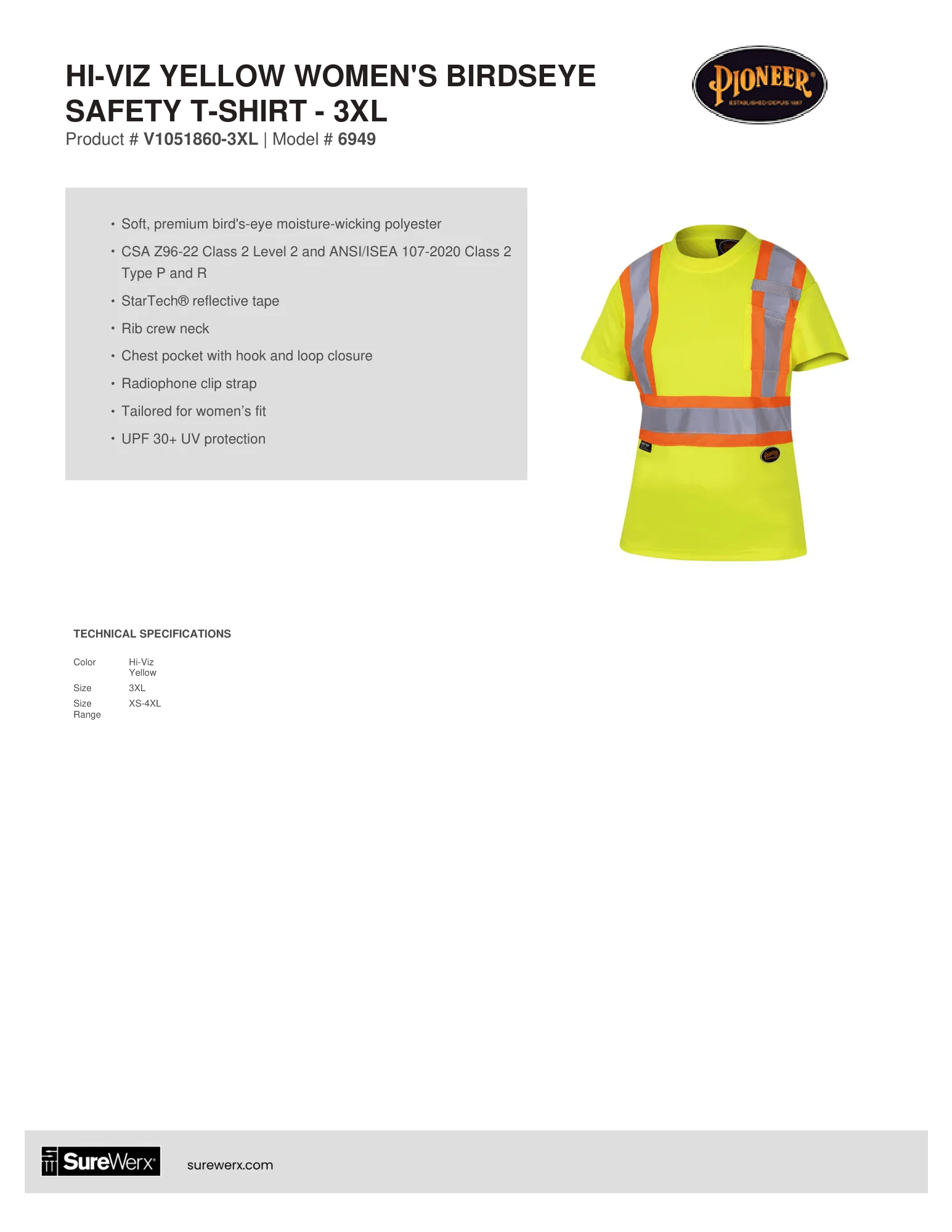 Women's Hi-Vis Bird's-Eye Safety T-Shirt - Hi-Vis Yellow - 3XL– Technical Specs